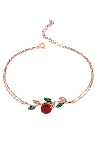 925 ayar Gümüş Sevginin Temsili Yeşil Yapraklı Gül Bileklik