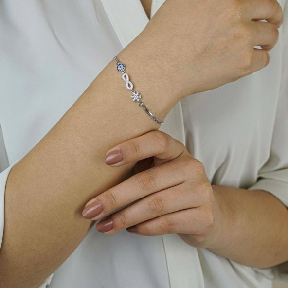 925 Ayar Gümüş Nazarlı Sonsuzluk Kar Tanesi Bayan Bileklik