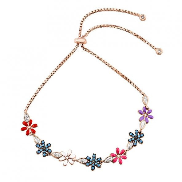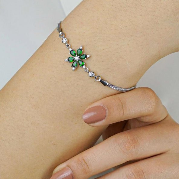 925 Ayar Gümüş Renkli Mineli Çiçek Bayan Bileklik