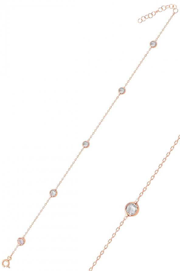 Gümüş rose renkli taşlı bileklik