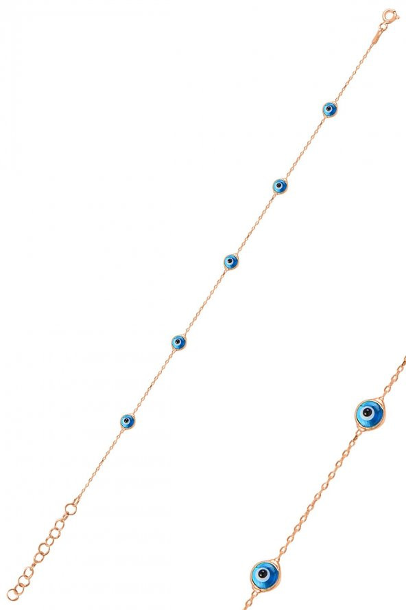Sonsuzluk Kalp Nazar Tasarımlı Rose Renk 925 Ayar Gümüş Kadın Bileklik
