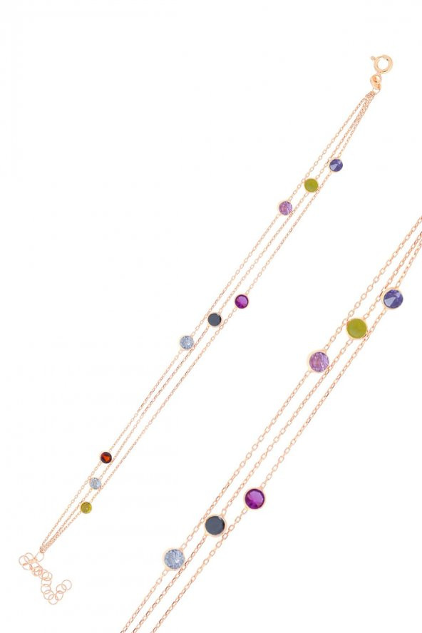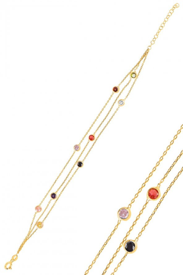Gümüş altın yaldızlı renkli sıra taşlı bileklik