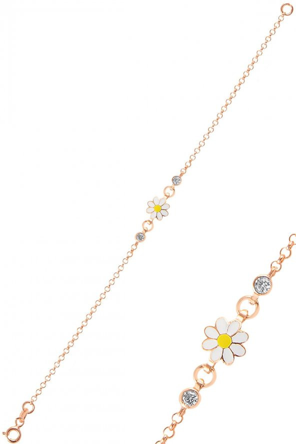 Gümüş zirkon taşlı papatya bileklik