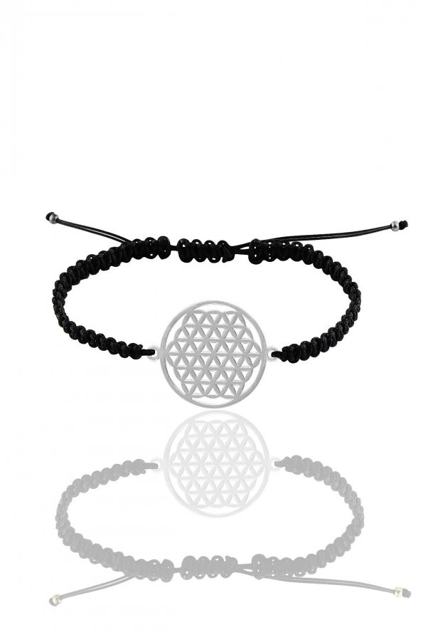 Gümüş rodyumlu yaşam çiçeği örgülü bileklik