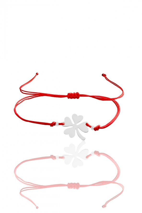 Gümüş rodyumlu yonca modeli makrome ip şans bileklik