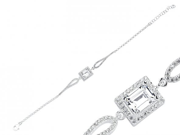 Pırlanta Montürlü Kare 925 Ayar Gümüş Su Yolu Bileklik