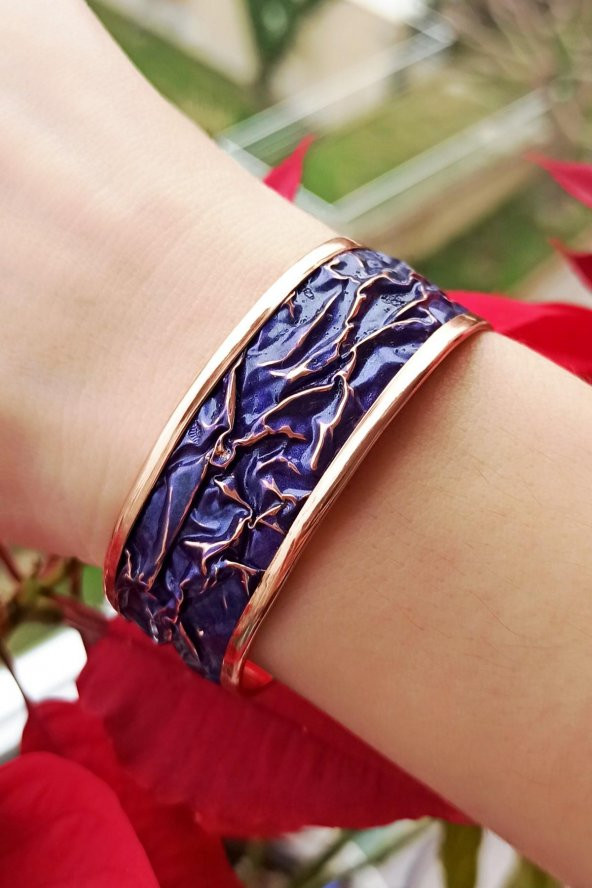 Mor Renk Rölyef Desen Şekilli Kadın Bileklik El Yapımı Ayarlanabilir Bakır Kadın Bileklik