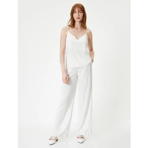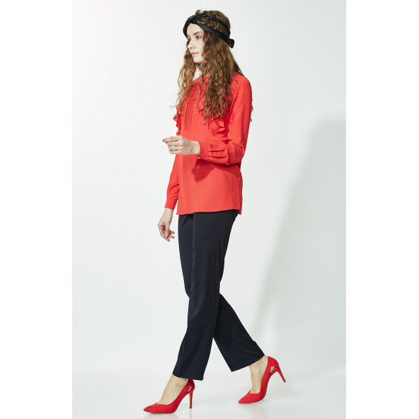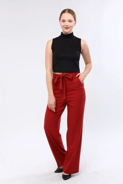 Kadın Kiremit Beli Bağcıklı Kumaş Pantolon