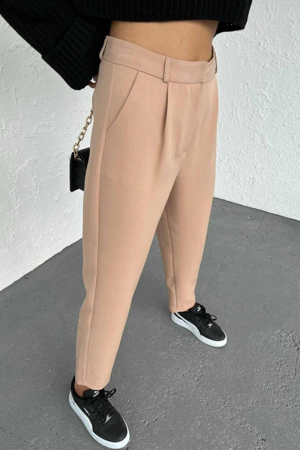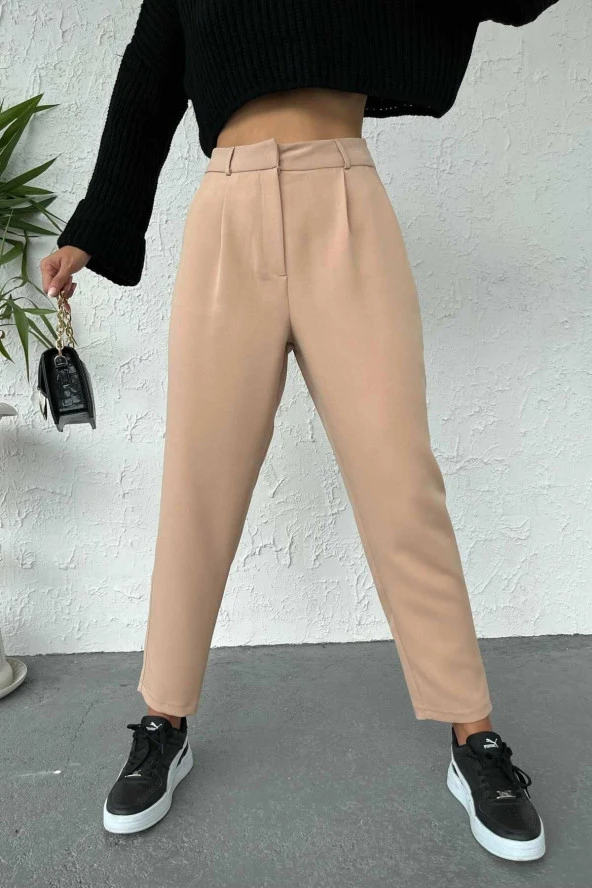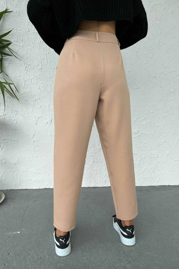 VioShine Kadın Kemerli İspanyol Paça Yüksek Bel Pantolon