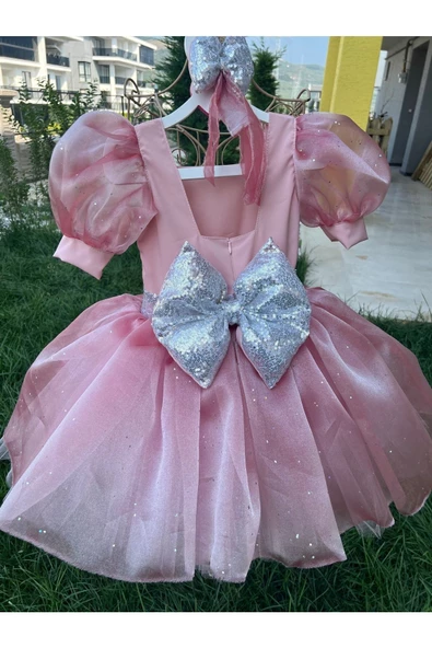 Kız Çocuk Pudra Pembe Kabarık Tüllü Abiye Elbise
