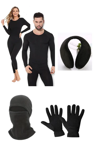 Unisex Termal Içlik Alt Üst Takım Polar Maske Polar Eldiven Set
