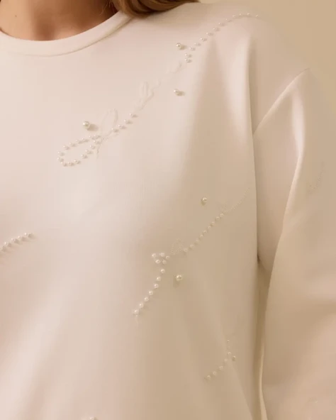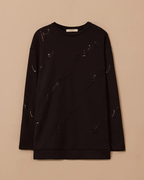 Büyük Beden Nakış Detaylı Boncuklu Sweatshirt Gala-Xi