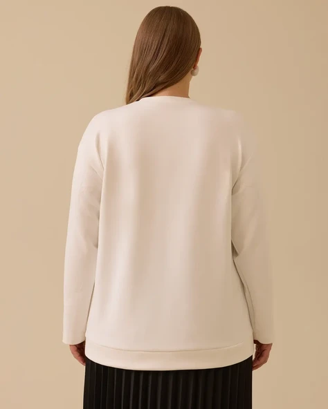 Fermuar Detaylı Oversize Sweatshirt - Beyaz