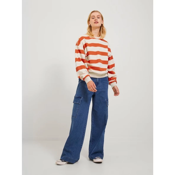Jack&Jones JJXX Oversize Çizgili Uzun Kol Kadın Sweatshirt - Günlük Şıklık