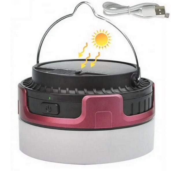 Kamp Lambası Solar Güneş Enerjili Ampül Led Şarjlı El Feneri Powerbank 5 Mod Kırmızı İkaz Led Modu
