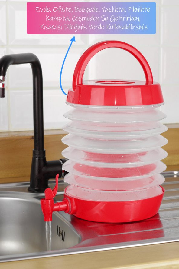 Musluklu Katlanır Su Bidonu Outdoor Akordiyon Kamp Çeşme Piknik Damacana İçecek Şişesi Kova Kırmızı