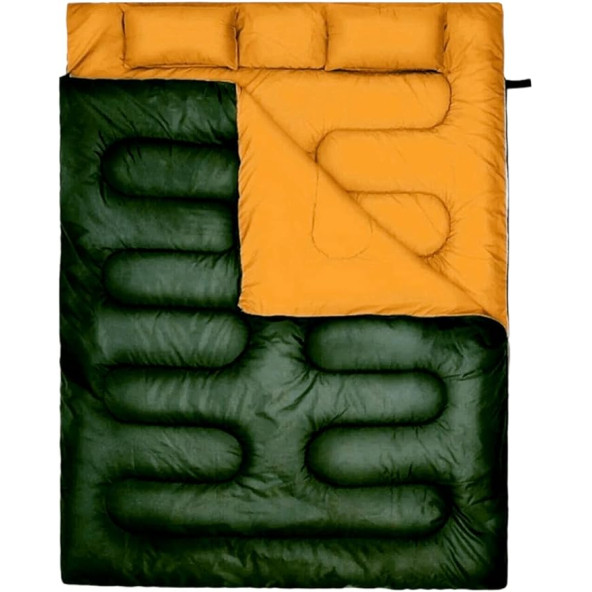 MED ONLİNE Çift Kişilik Uyku Tulumu Haki Çift Taraflı Su Geçirmez 180 gr Polar/220 gr Elyaf Kamp(-15/-25)