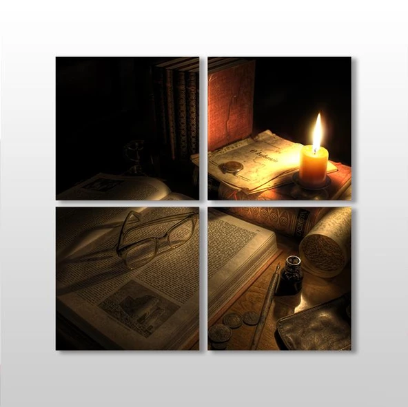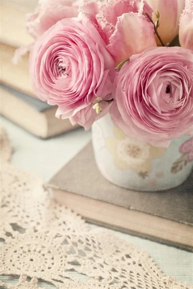 Kitaplar ve Pembe Çiçek - Kanvas Tablo