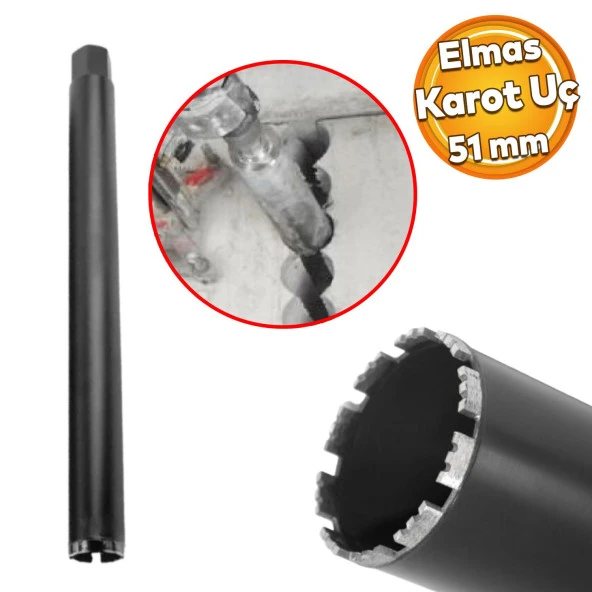 Elmas Karot Ucu 51 mm Shun Beton Zemin Duvar Delme Delik Açma Panç Aparat Uç Deprem Numune Al Test