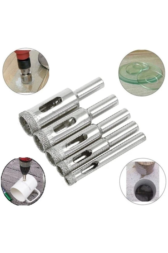 Depolife Cam Fayans Mermer Granit Seramik Porselen Yuvarlak Delik Panç Delme Seti Elmas Uç 5-6-8-10-12mm 5li