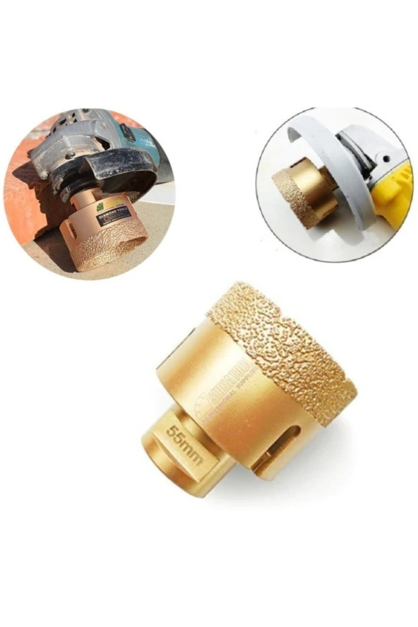 Depolife Mermer Granit Panç Fayans Beton Kaya 55mm Sarı Elmas Delme Ucu Avuç Taşlama Uyumlu (m14) Karot Delik