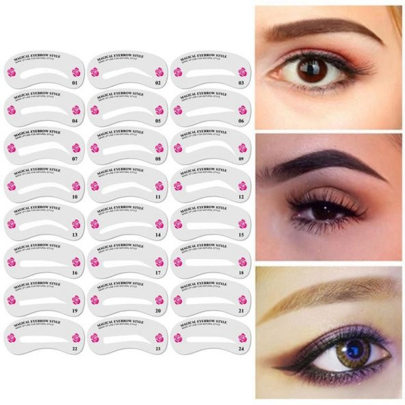 24 Adet Yeniden Kullanılabilir Kaş Şablonu Şekillendirici Makyaj Seti Kozmetik Kaş Kalıpları