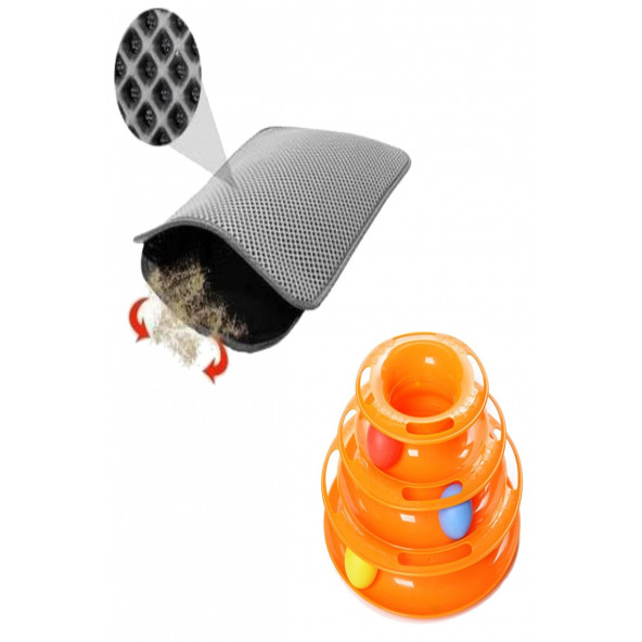 TİNEKE 2 Li Set Tower Of Tracks Kedi Oyuncağı '' Elekli Kedi Tuvalet Paspası (gri)