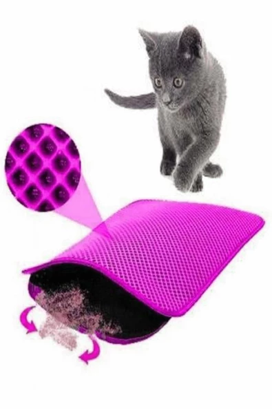 TİNEKE 60x42 Cm Elekli Kedi Tuvalet Önü Paspası Kedi Paspası PEMBE