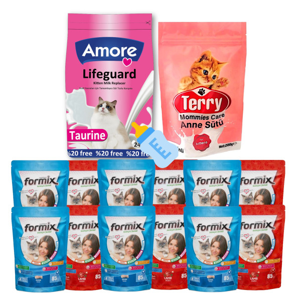 LifeGuard Kitten Milk Süt Tozu 240gr, Terry 200gr, 12-Formix-Punch Islak Kedi Ödülü, Biberon