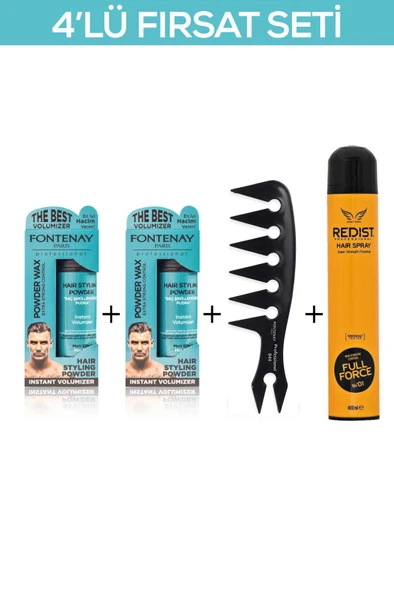 Fontenay Saç Şekillendirici Pudra Toz Wax Mat Effect Ve Ultra Strong 20gr + Şekil Tarakı 2 + Saç Spreyi 400ML 4lü Set