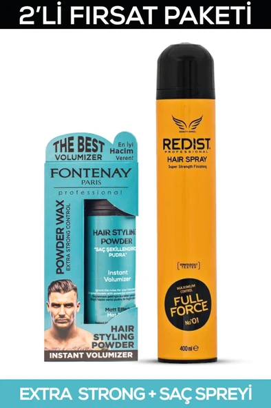 Fontenay Saç Şekillendirici Pudra Toz Wax Ultra Strong Turuncu 20gr X2 + 400ml Saç Spreyi 3Lü Set