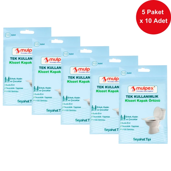 Mulpex Tek Kullanımlık Suda Çözünür Klozet Kapak Örtüsü - 5 x 10 lu Paket | Hijyenik ve Pratik Seyahat Aksesuarı