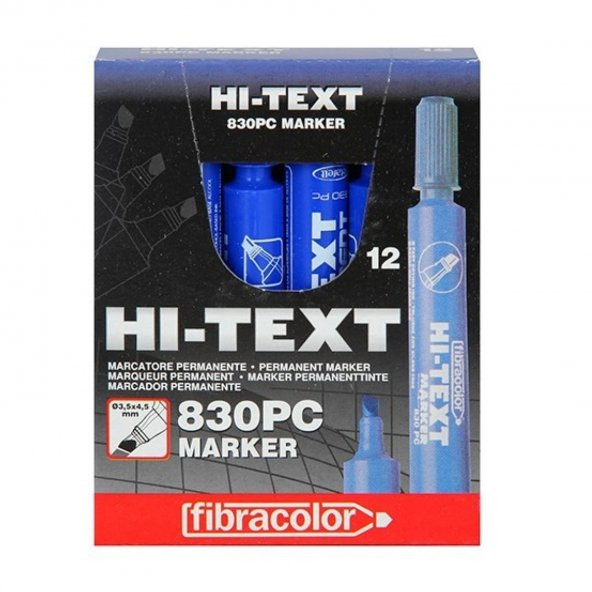 Hi-text 830 C Permanent Koli Kalemi Kesik Uç Mavi -12li