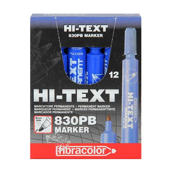 Hi-Text 830PC Kesik Uç Permanent Marker Koli Kalemi Mavi 12 Adet