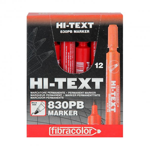 Hi-Text 830PC Kesik Uç Permanent Marker Koli Kalemi Kırmızı 12 Adet