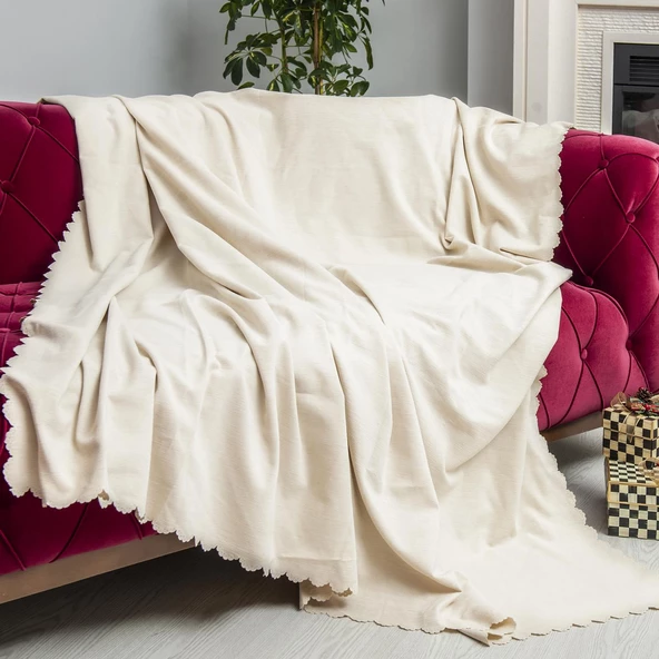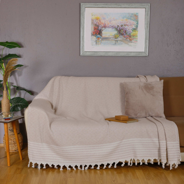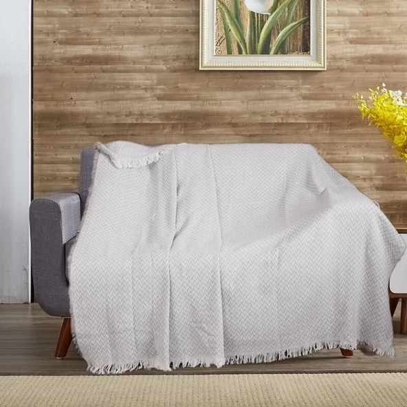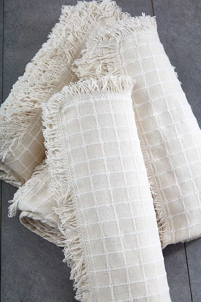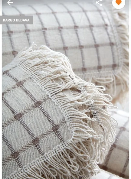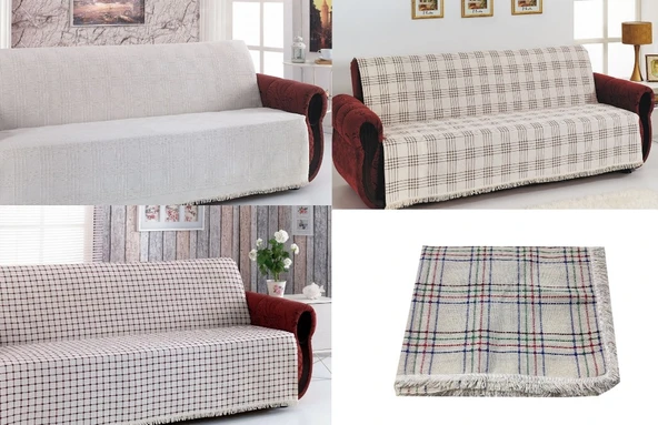 22 %100 Pamuklu Kareli Krem Buldan Işi Koltuk Örtüsü 180*100