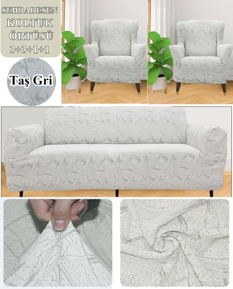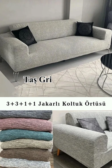 Upmall Jakarlı Ağaç Kabuğu Koltuk Örtüsü 3+3+1+1 Takımı Lastikli Esnek Yıkanabilir Çekyat Kanepe Kılıfı