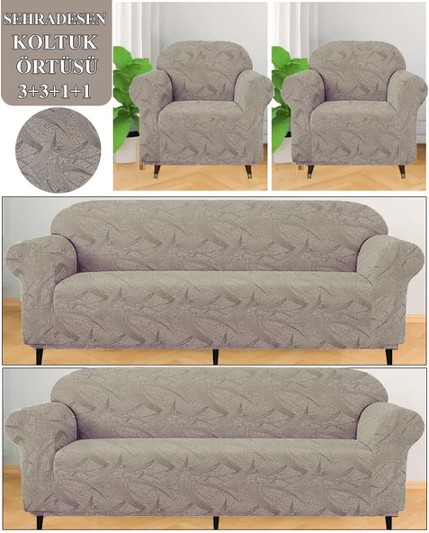 Upmall Streç Lastikli Esnek Yıkanabilir Pamuklu Sehra Desen 3+3+1+1 Jakarlı Koltuk Örtüsü Koltuk Kılıfı