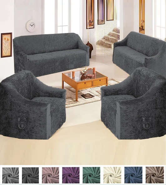 Upmall Kadife 3+3+1+1 Lastikli Kanepe Örtüsü Lastikli Koltuk Örtüsü Koltuk Kılıfı