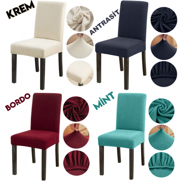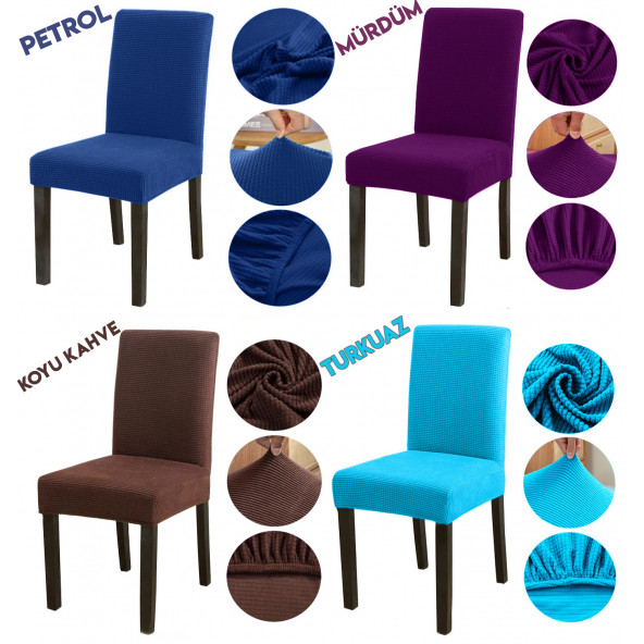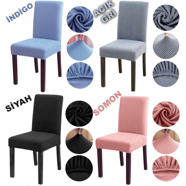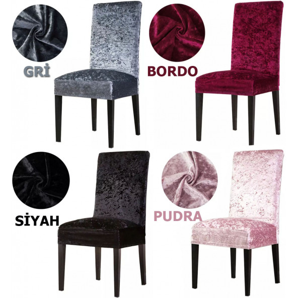 Pamuk Kadife Sandalye Kılıfı Lastikli Sandalye Örtüsü 6 Adet