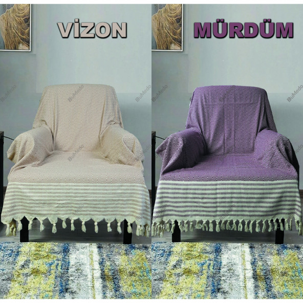 Bumedo Buldan Işi %100 Organik Pamuk Koltuk Örtüsü 170x210 Cm Koltuk Şalı Çekyat Kanepe Örtüsü