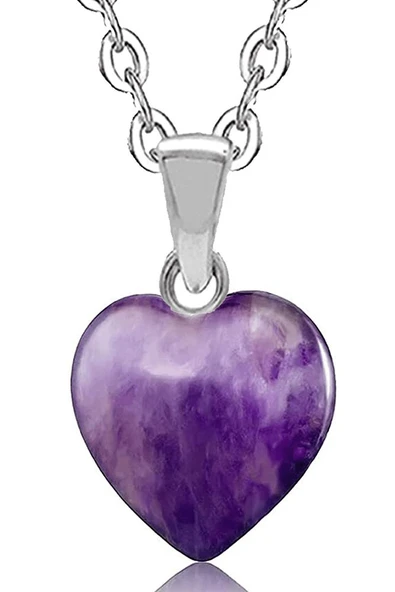 Sertifikalı Kalp Şekilli Doğal Ametist Taşı Kolye