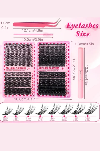 800 Parça Kendin Yap Kirpik Seti – 9-16mm Küme Kirpikler, Cımbız, Fırça ve Yapıştırıcı ile Birlikte Büyük Kapasiteli Kitap Seti