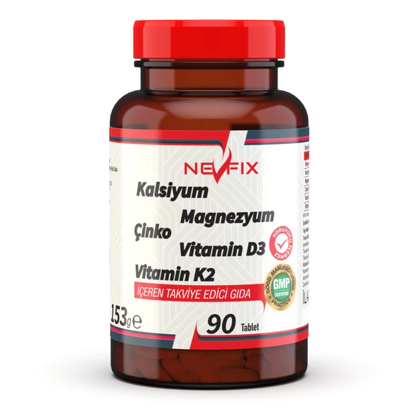 Nevfix 90 Tablet Kalsiyum Magnezyum Potasyum Çinko Vitamin D3 Vitamin K2