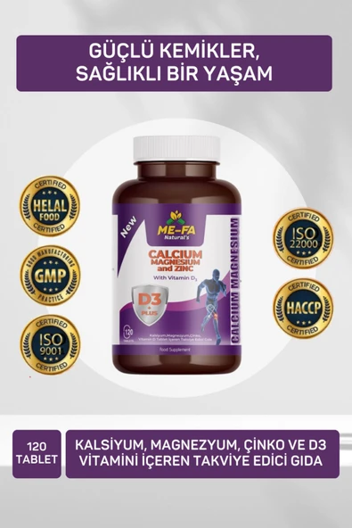 MEFA NATURALS MEFA NATURALS Kalsiyum Magnezyum Zinc Vitamin D3 120 Tablet
