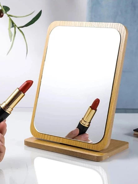Masaüstü Ayna Eğimi Ayarlanabilir Menteşeli 18 cm Görünümlü Ahşap Makyaj Cilt Bakımı Ayna E46