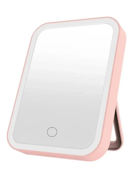 Beyaz Renk Masaüstü Dokunmatik Makyaj Aynası LED Işıklı Pembe Renk Make Up Mirror E59