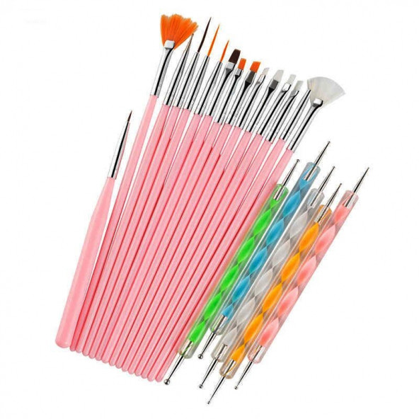 Ecoform 20 Parça Nail Art Tırnak Süsleme Desen Fırça ve Dot Kalem Seti