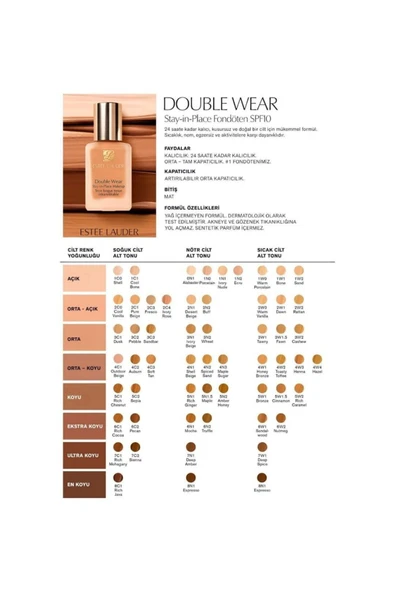ESTEE LAUDER Doğal Ve Mat Bitişli - Double Wear Stay-in-place Fondöten Spf 10 ( 2w1.5 Natural Suede ) - 30 Ml