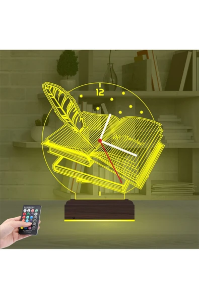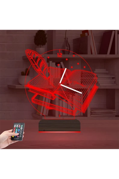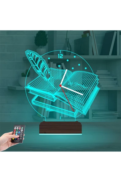 Kirppi 3d Saat Lamba Öğretmen Hediye Kitap Tasarım Kişiye Özel Masa Gece Lambası